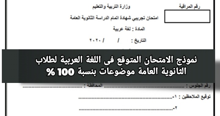 عاجل نموذج الامتحان المتوقع فى اللغة العربية لطلاب الثانوية العامة موضوعات بنسبة 100